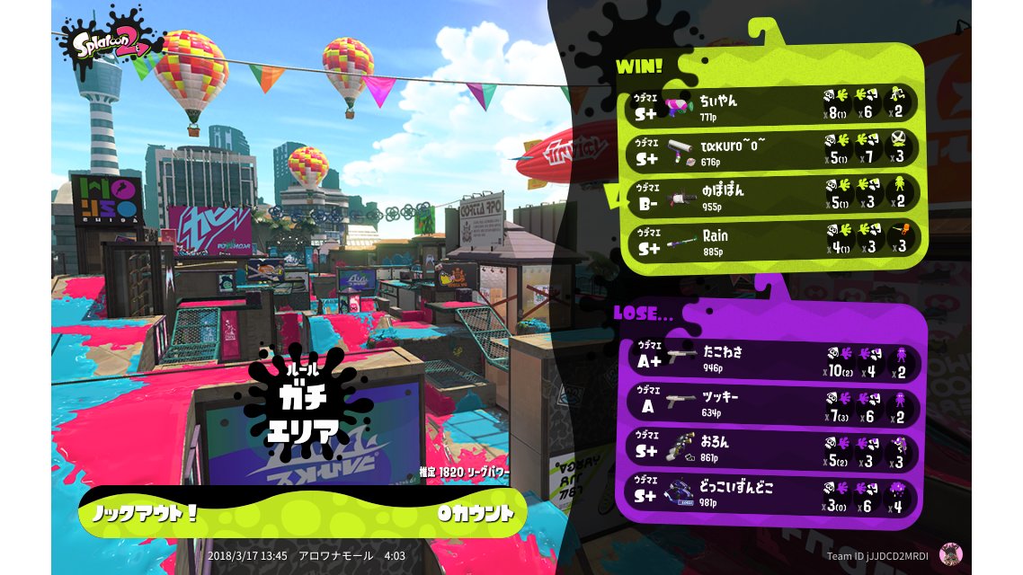 | Name | Weapon | Level | Rank | Inked | k+a/sp | k/d |