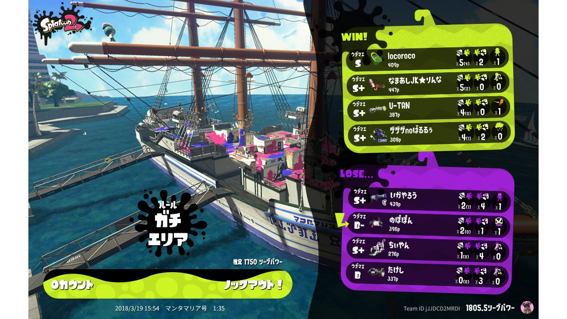 Name | Weapon | Level | Rank | Inked | k+a/sp | k/d |