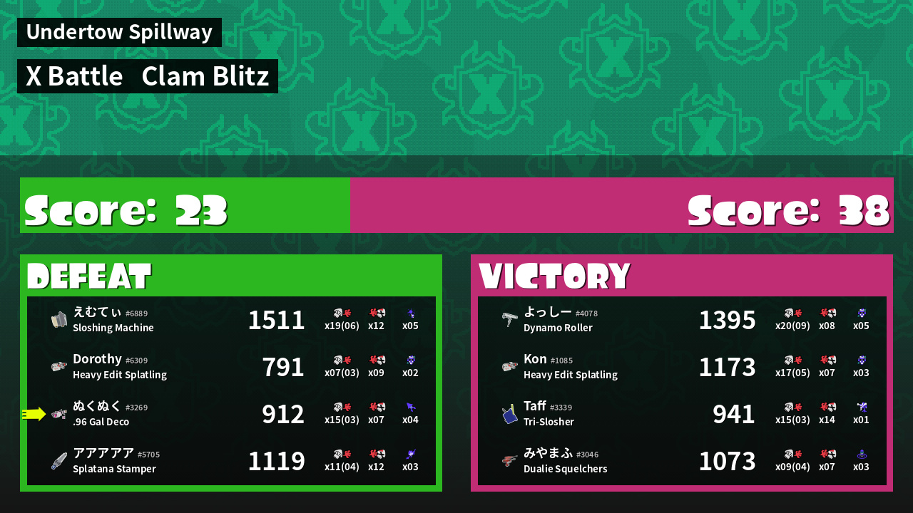 | Medals | #1 Super Jump Spot #1 Kraken Royale User #2 Overall Splatter | ||