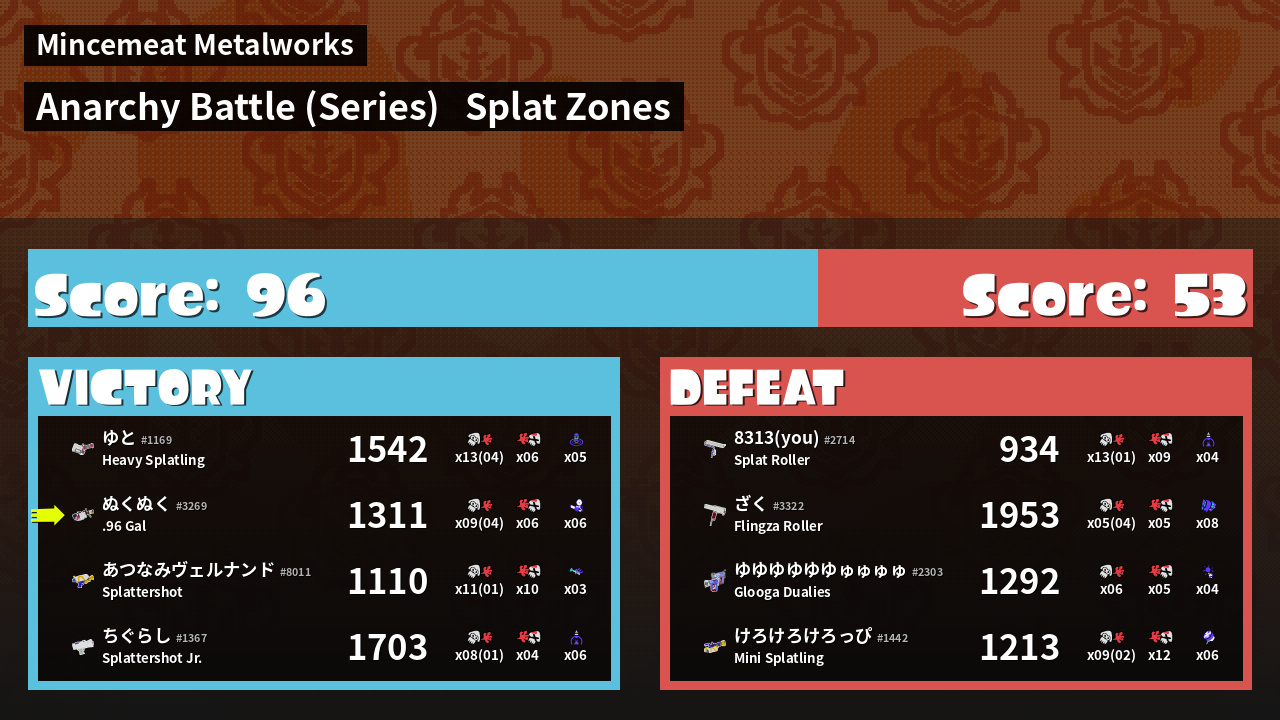 | Medals | #1 Super Jump Spot #1 Splat Assister #1 Damage Taker | ||