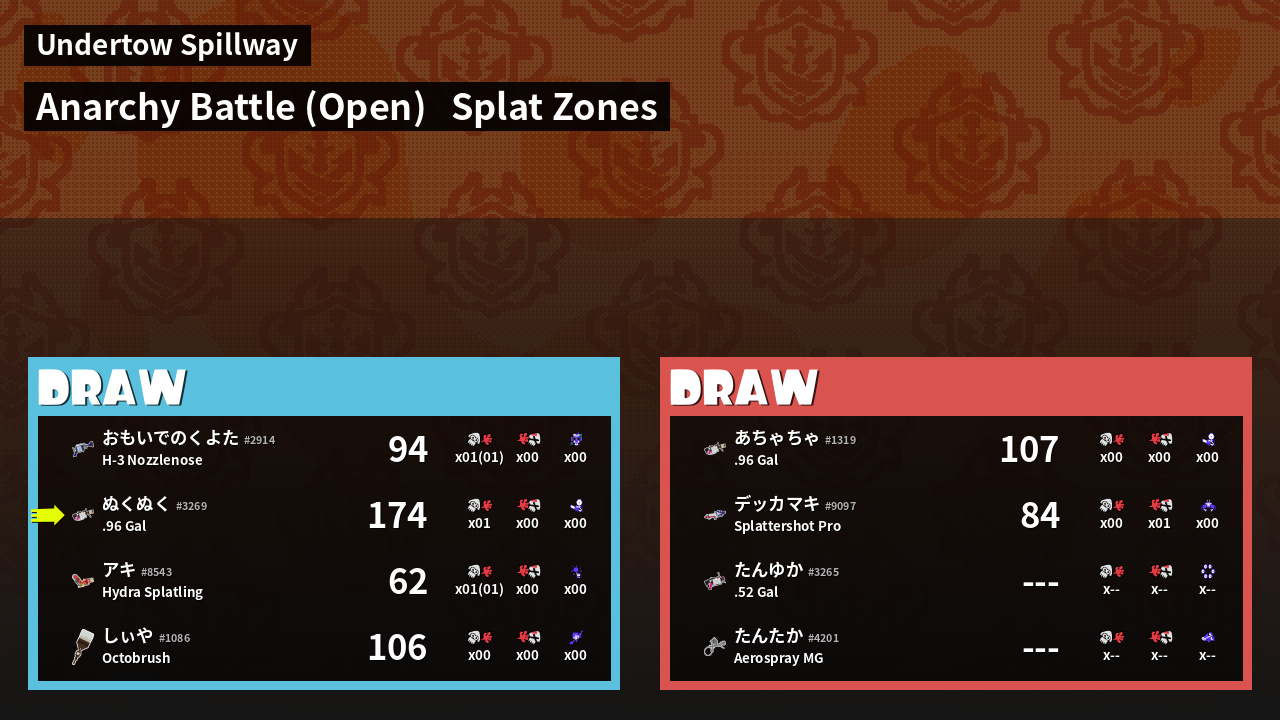 Results of ぬくぬく's Battle