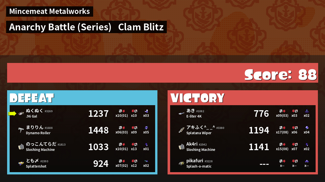 | Mode | Clam Blitz - Anarchy Battle (Series) | ||