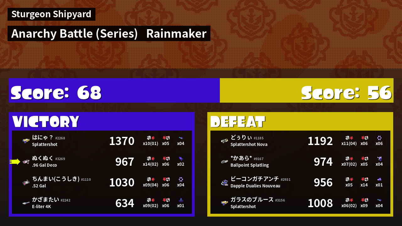 Results of ぬくぬく's Battle