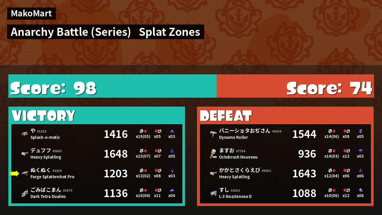 | Mode | Splat Zones - Anarchy Battle (Series) | ||
