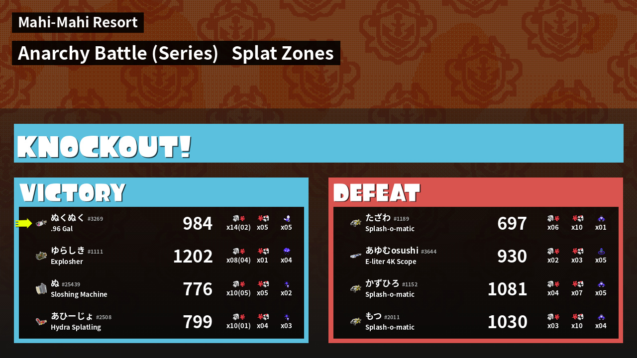 Results of ぬくぬく's Battle