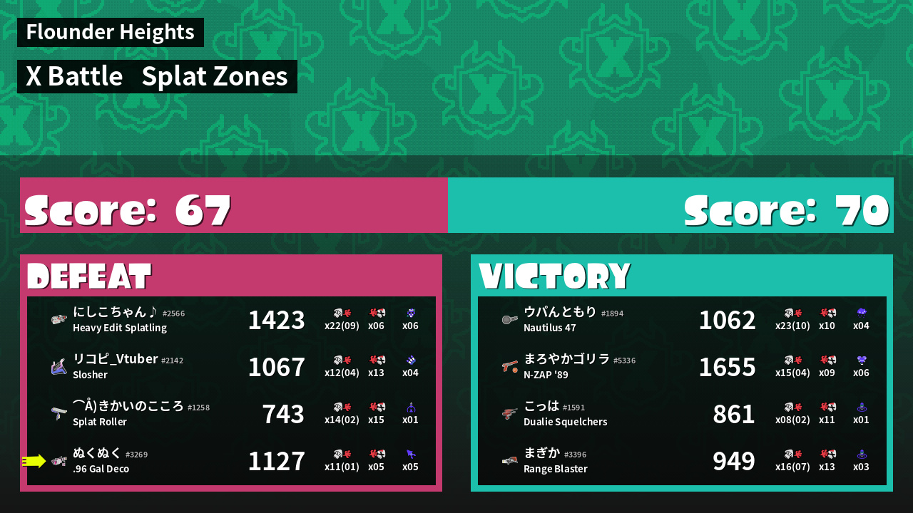 Results of ぬくぬく's Battle