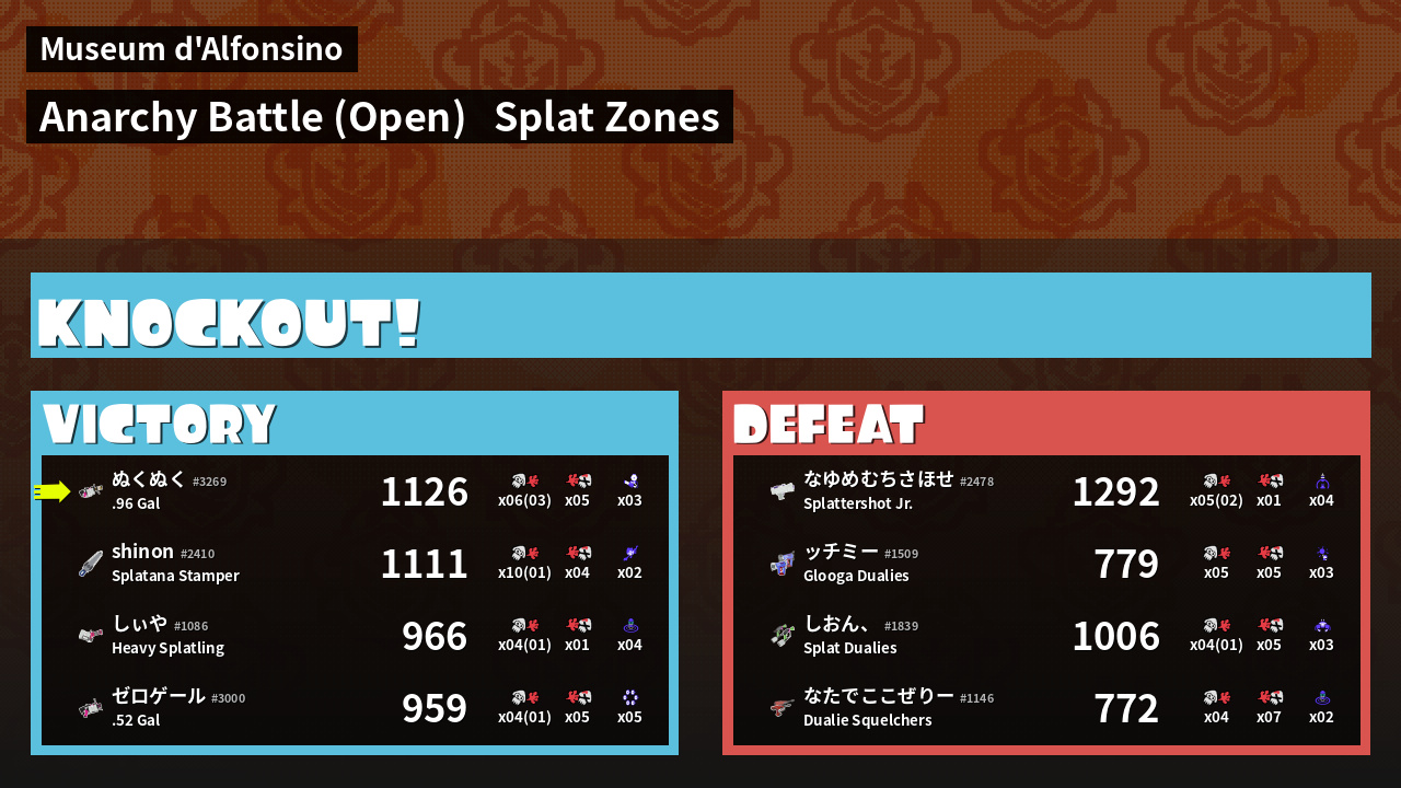 | Mode | Splat Zones - Anarchy Battle (Open) | ||