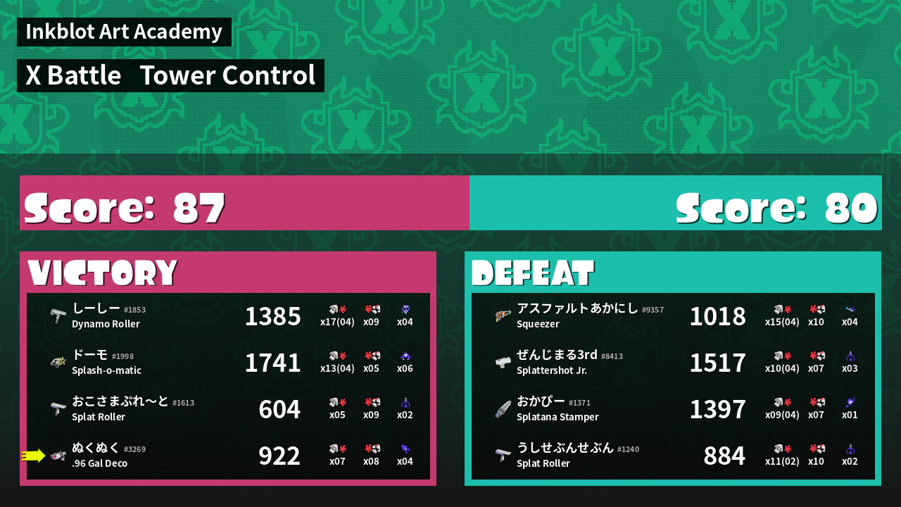 Results of ぬくぬく's Battle