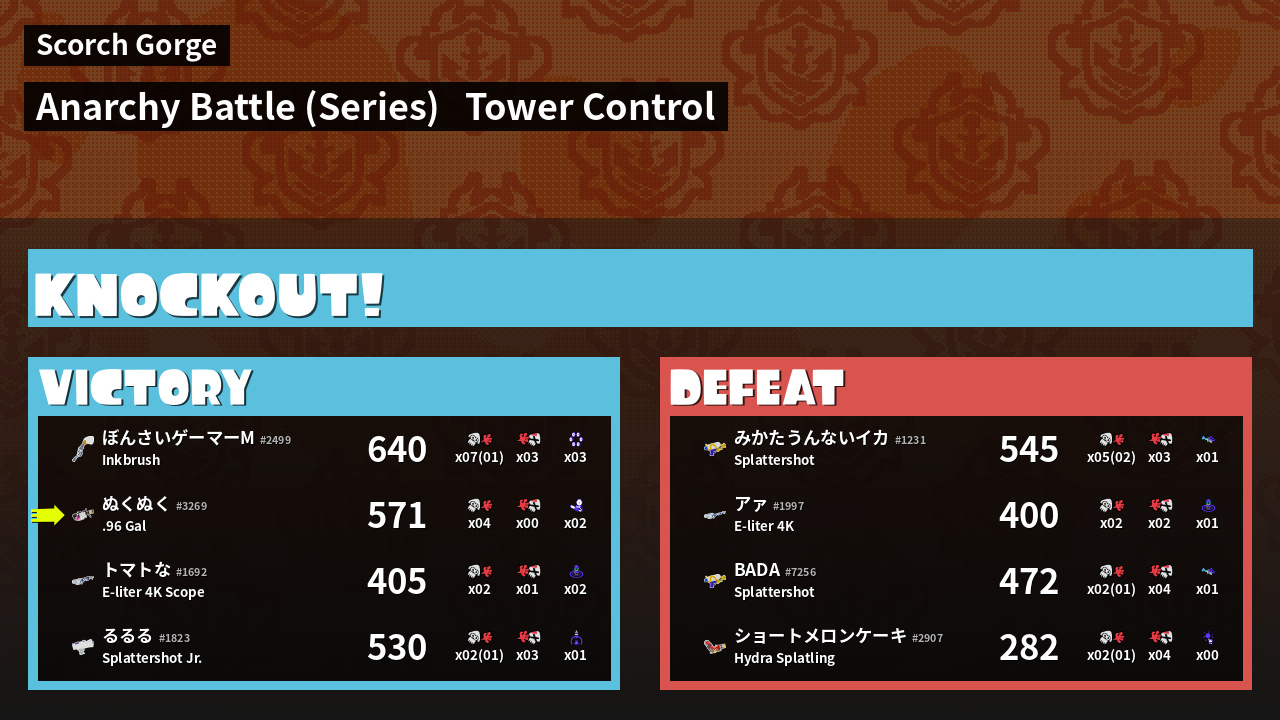 Results of ぬくぬく's Battle