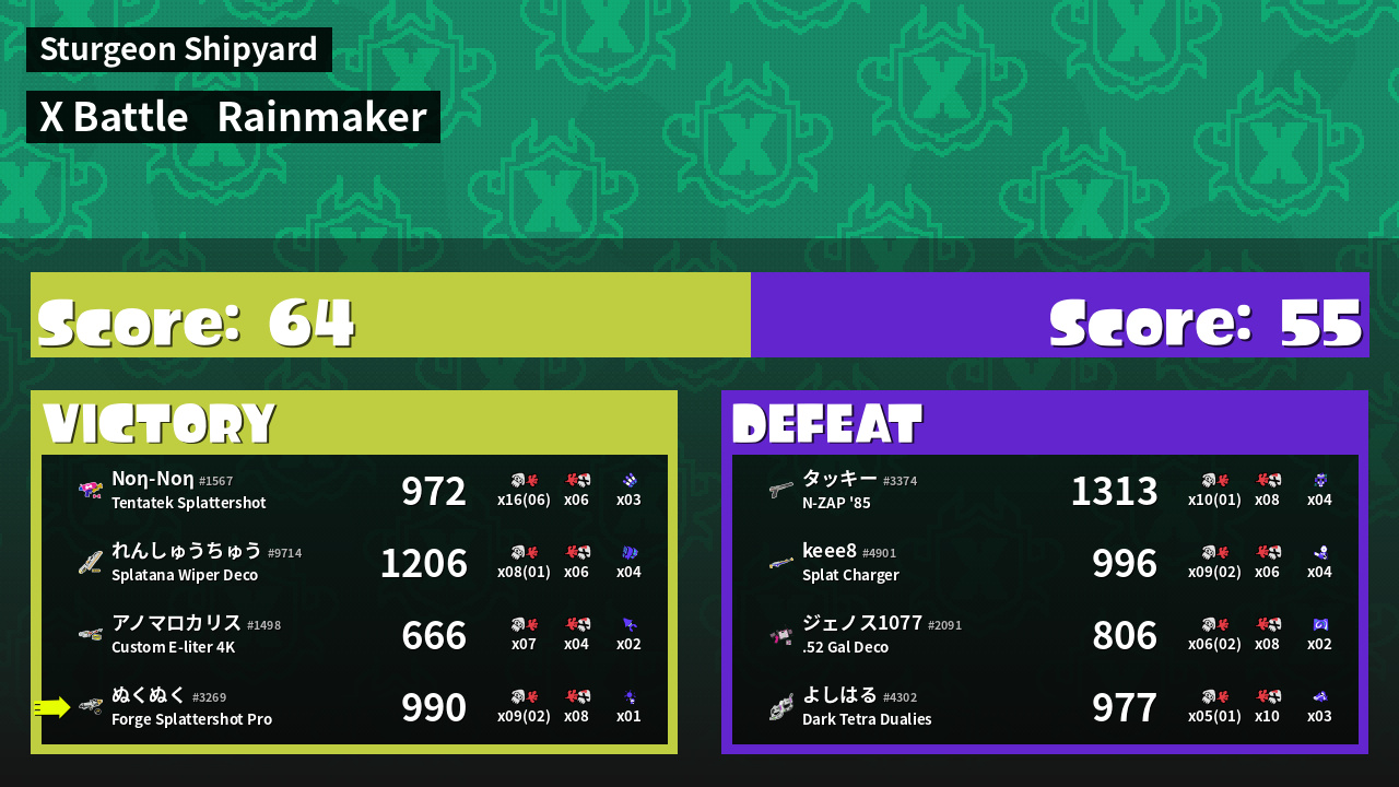 | Medals | #1 Ink Consumer #2 Overall Splatter #2 Turf Inker | ||