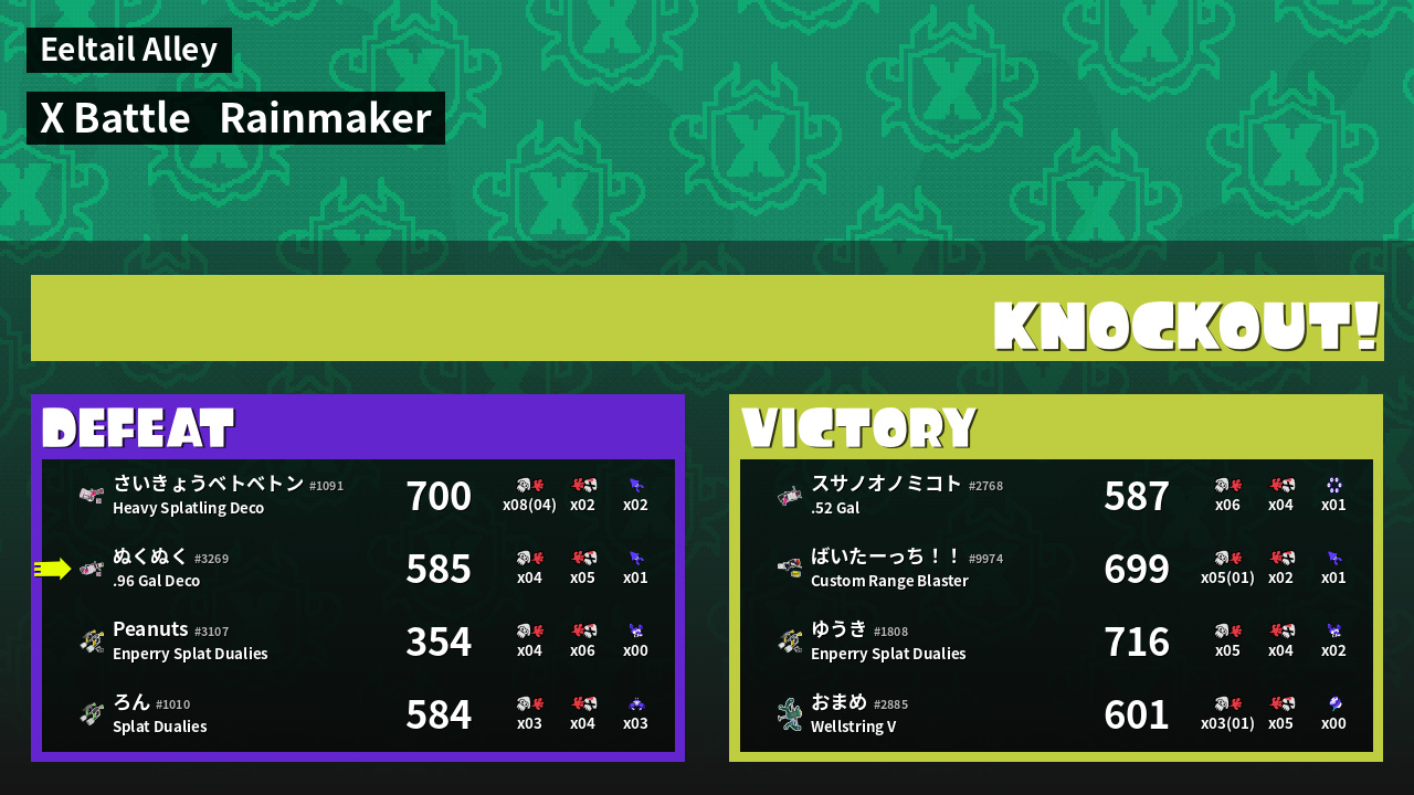 Results of ぬくぬく's Battle