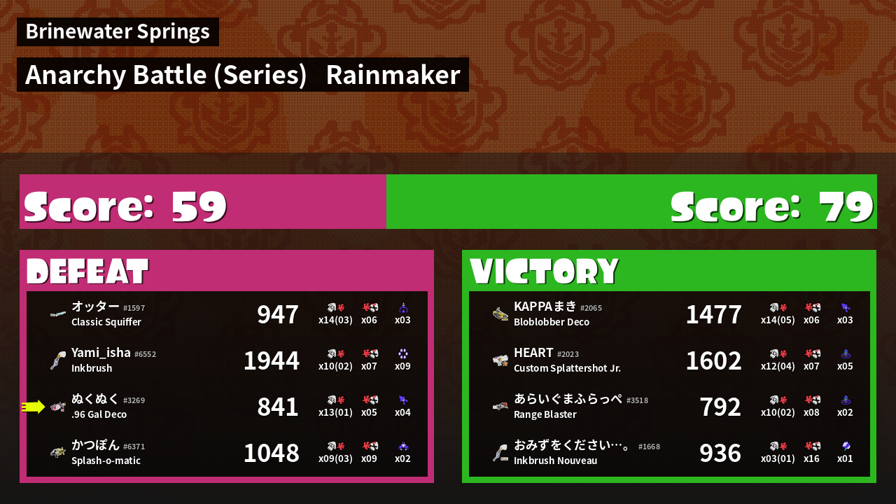 Results of ぬくぬく's Battle