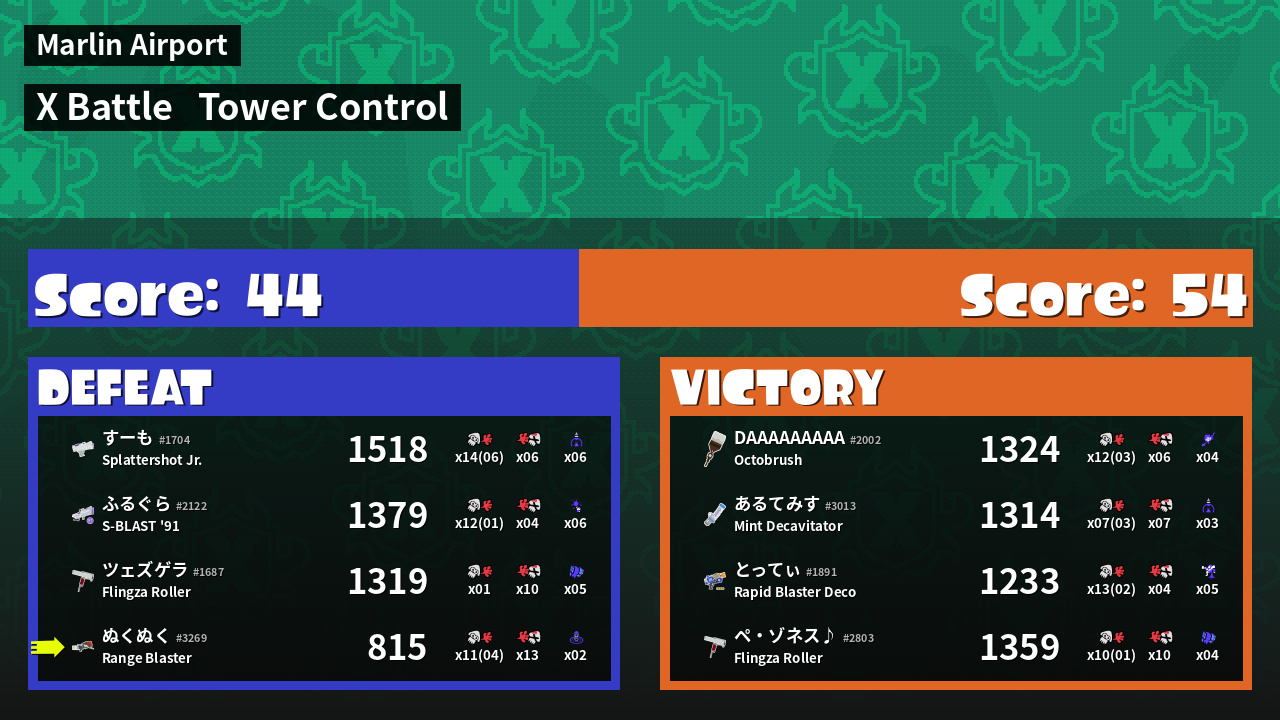Results of ぬくぬく's Battle