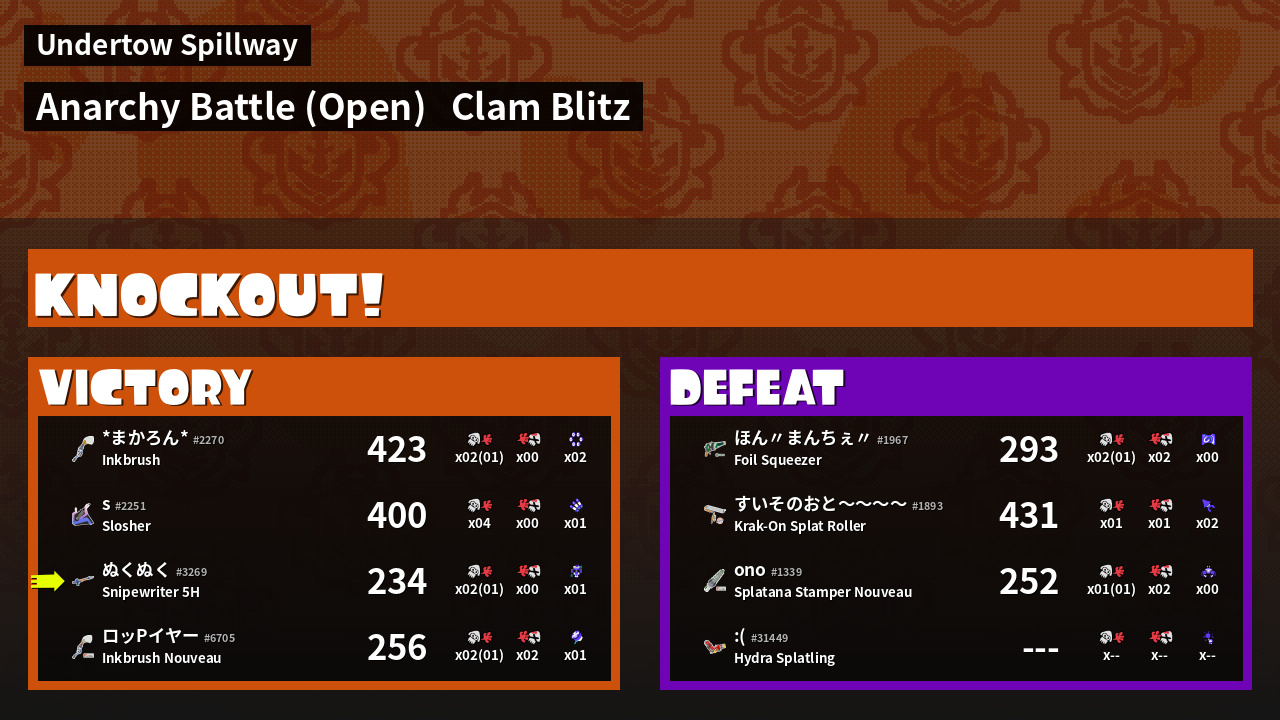 | Mode | Clam Blitz - Anarchy Battle (Open) | ||