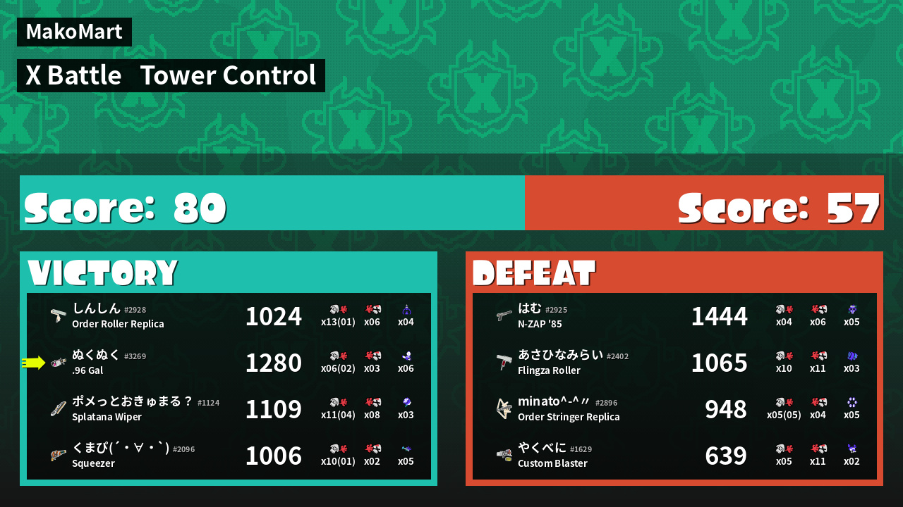 | Mode | Tower Control - X Battle | ||
