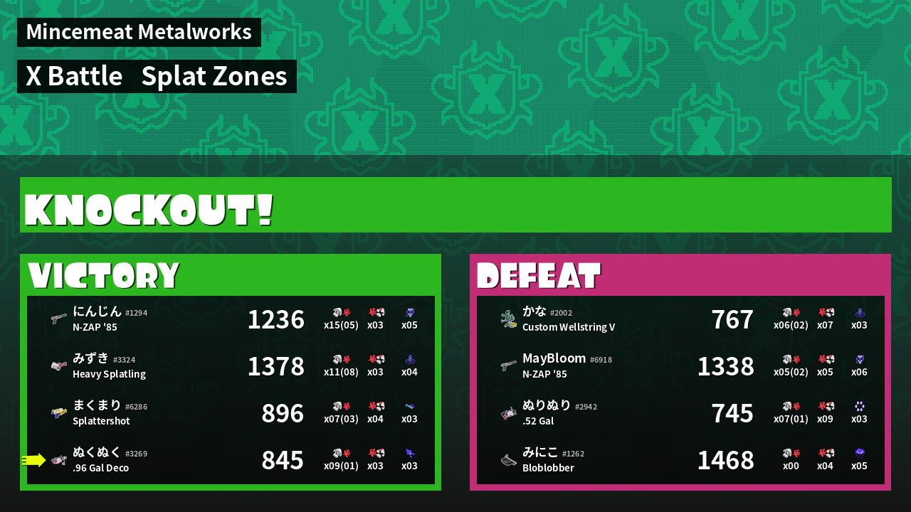 Results of ぬくぬく's Battle