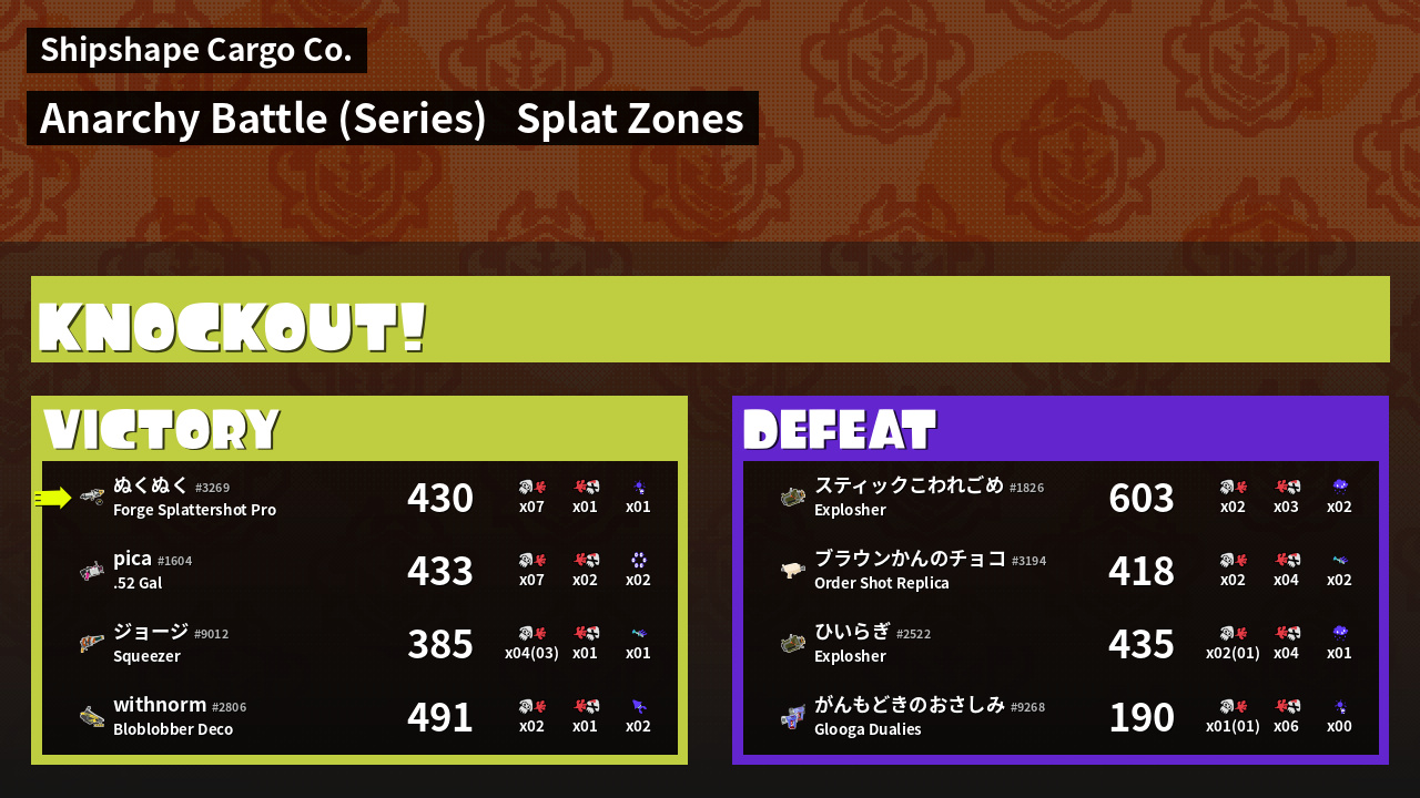 | Mode | Splat Zones - Anarchy Battle (Series) | ||