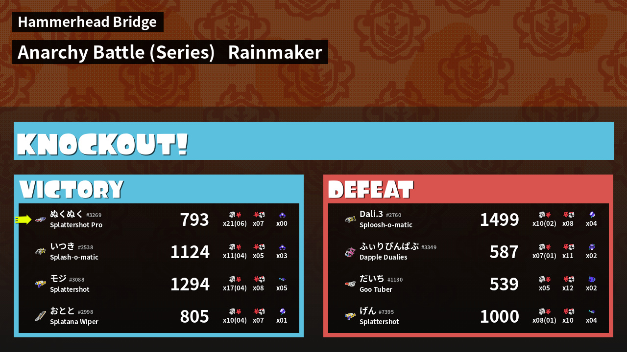 | Mode | Rainmaker - Anarchy Battle (Series) | ||