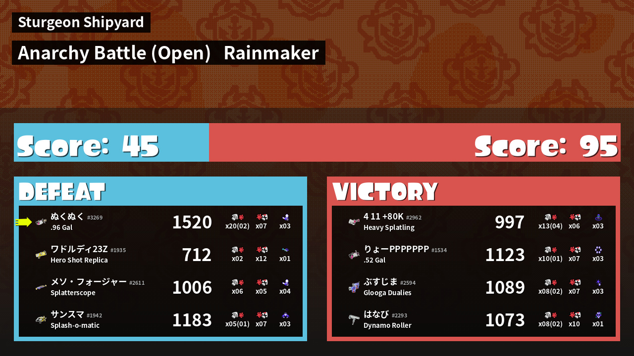 Results of ぬくぬく's Battle