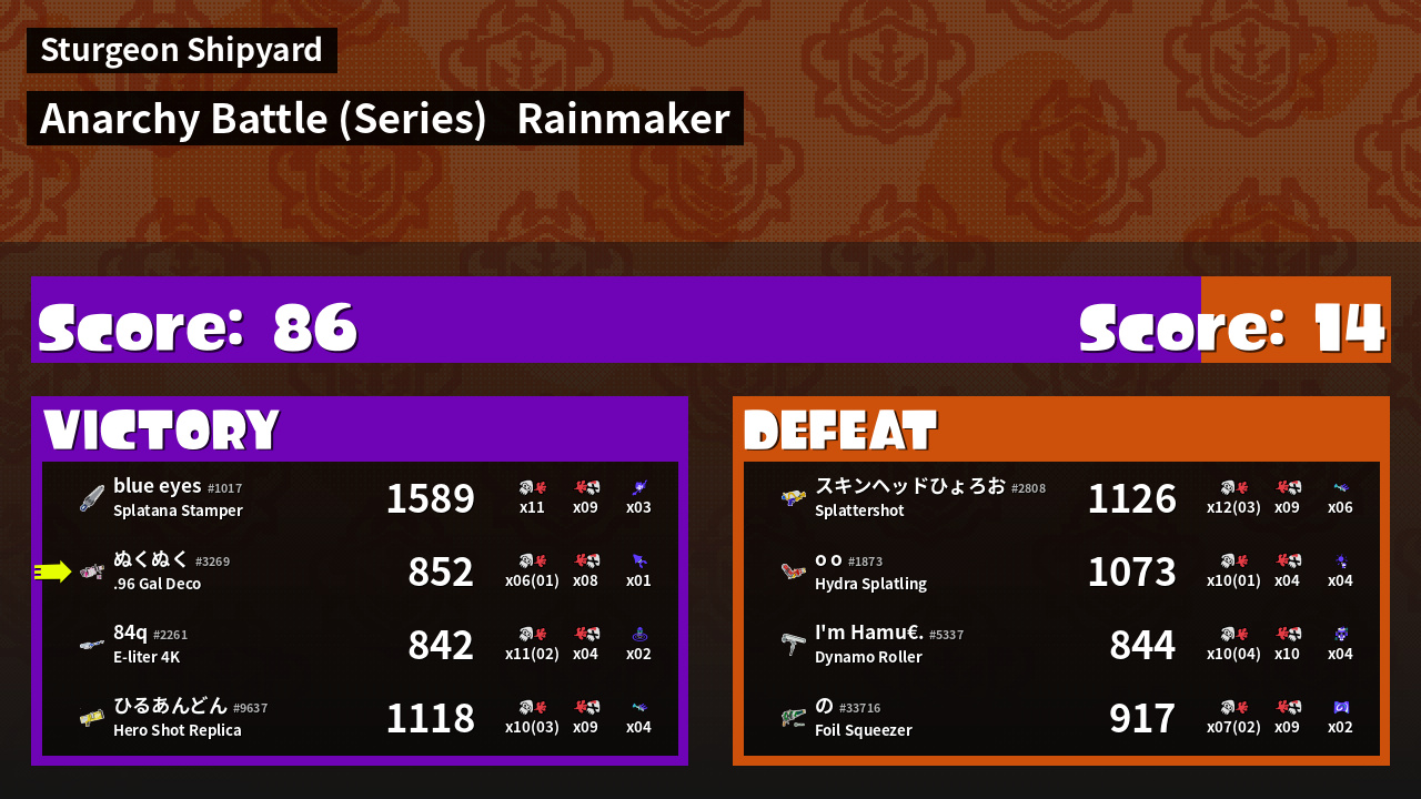 Results of ぬくぬく's Battle