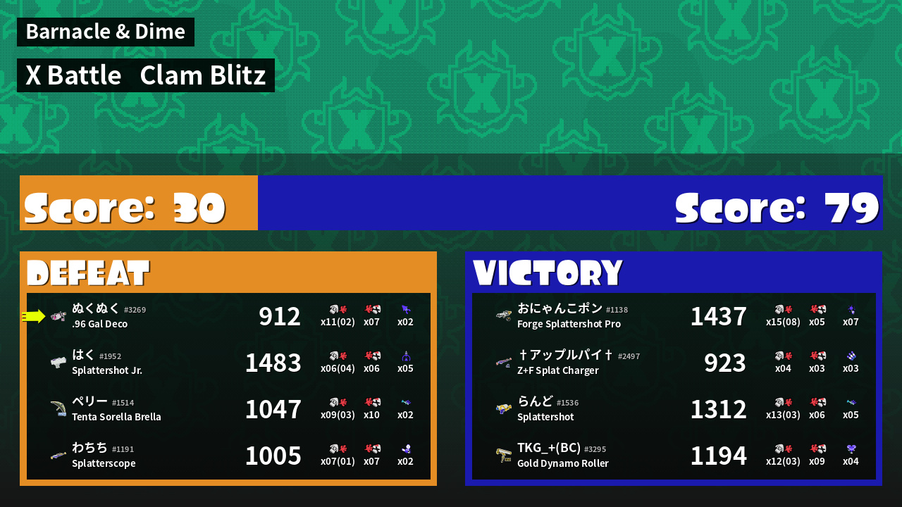 Results of ぬくぬく's Battle