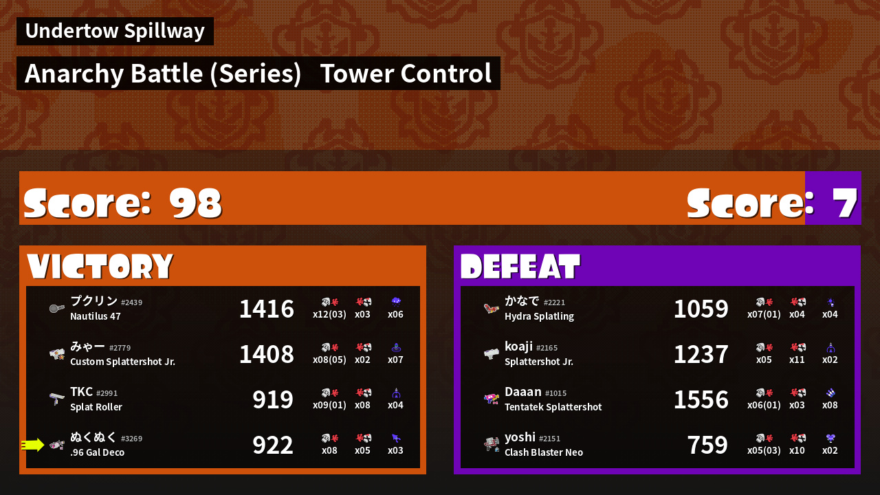 Results of ぬくぬく's Battle