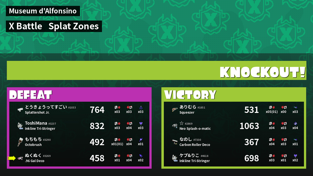 Results of ぬくぬく's Battle