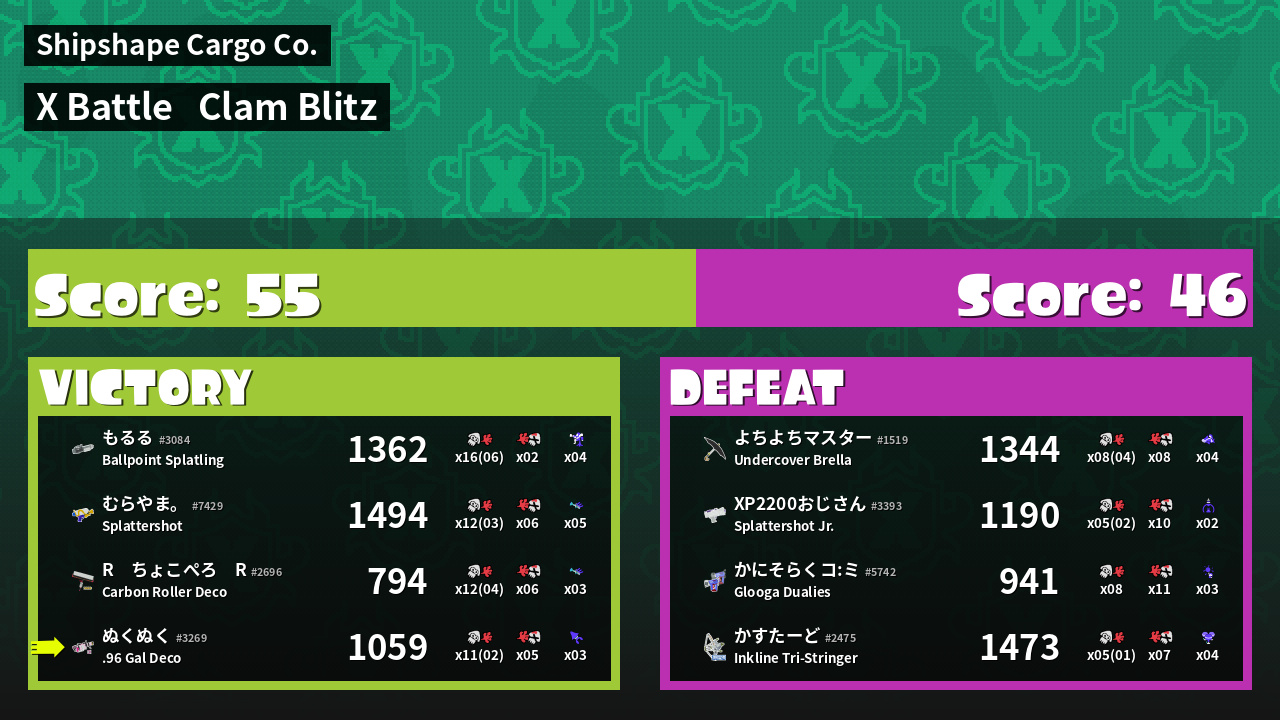 | Mode | Clam Blitz - X Battle | ||
