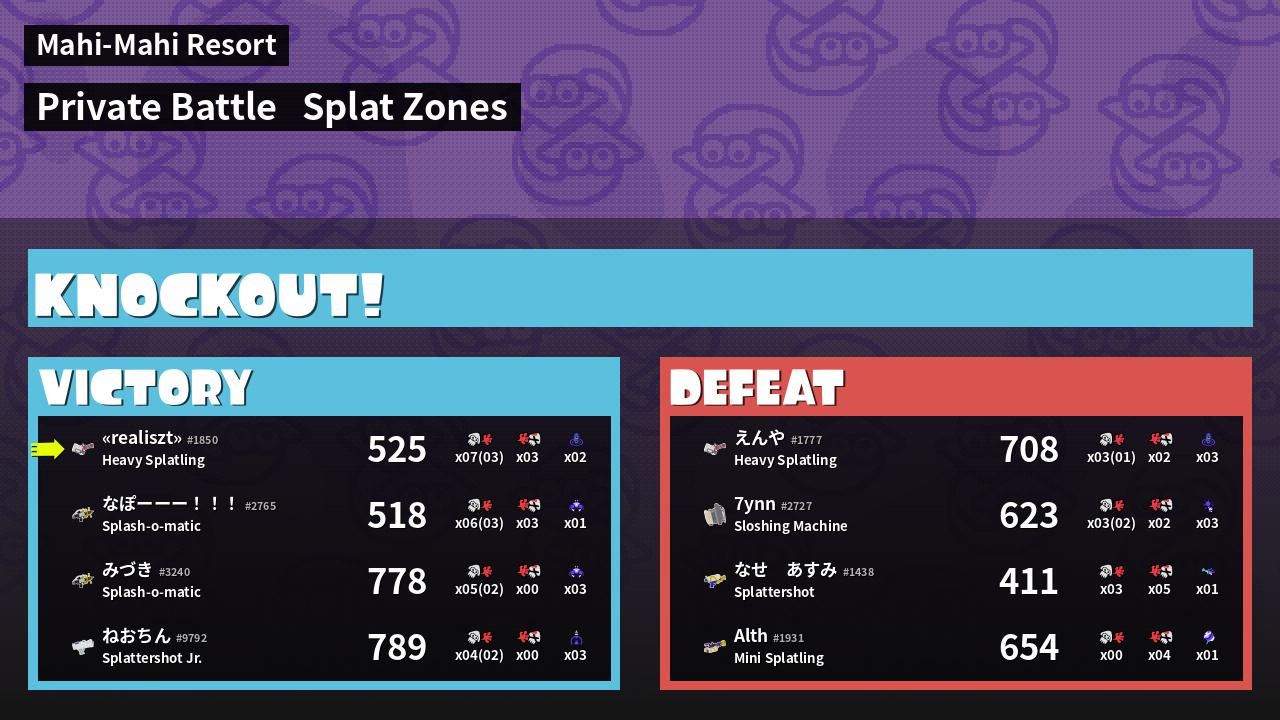 | Mode | Splat Zones - Private Battle | ||