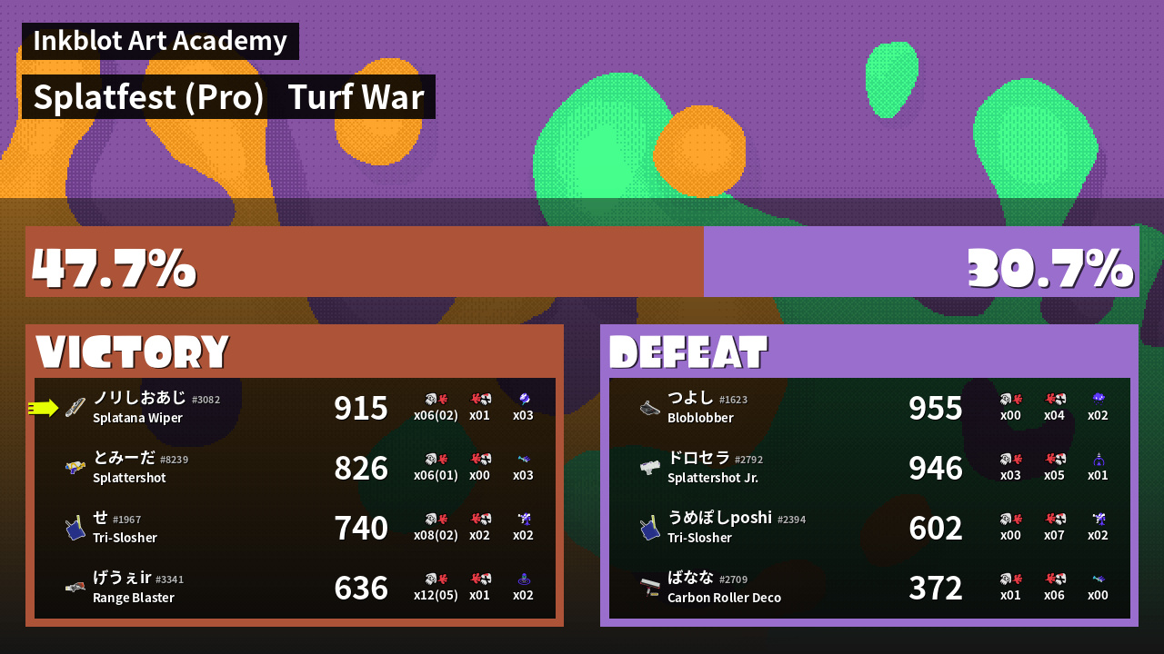 | Medals | #1 Turf Inker #1 Enemy-Base Inker #1 Ground Traveler | ||