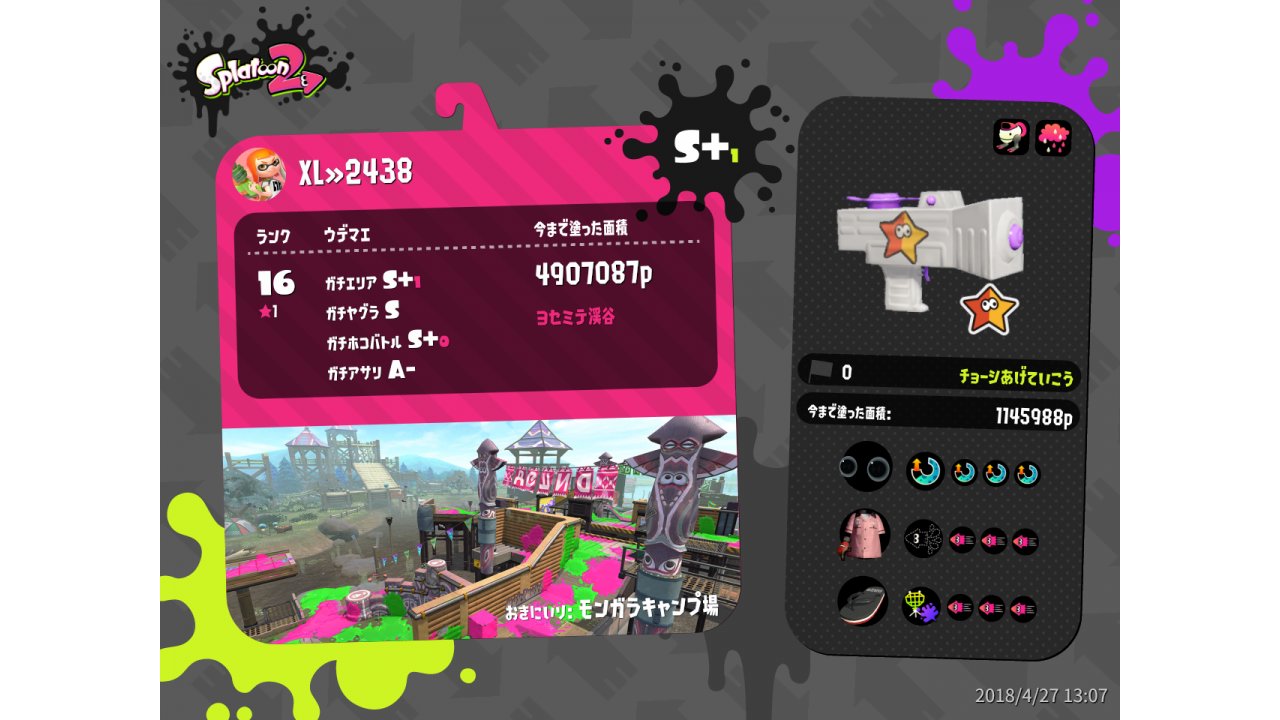 | Name | Weapon | Level | Rank | Inked | k+a/sp | k/d |