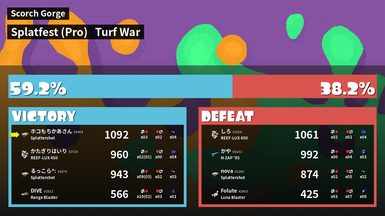 | Mode | Turf War - Splatfest (Pro) | ||