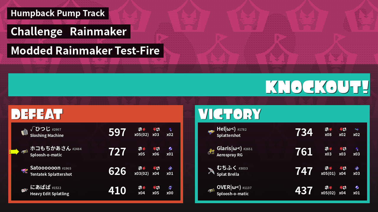 | Medals | #1 Overall Splatter #1 Turf Inker #1 Enemy Splatter | ||