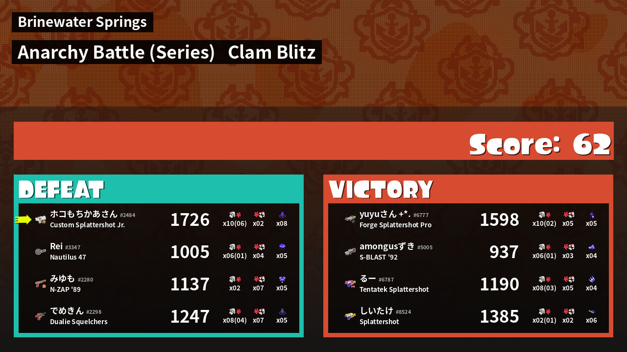 | Mode | Clam Blitz - Anarchy Battle (Series) | ||