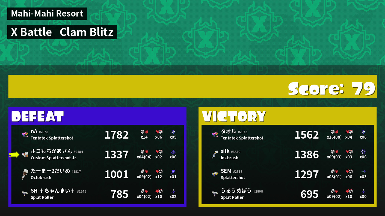 | Medals | #1 Clam Carrier #1 Super Jump Spot #1 Splat Assister | ||