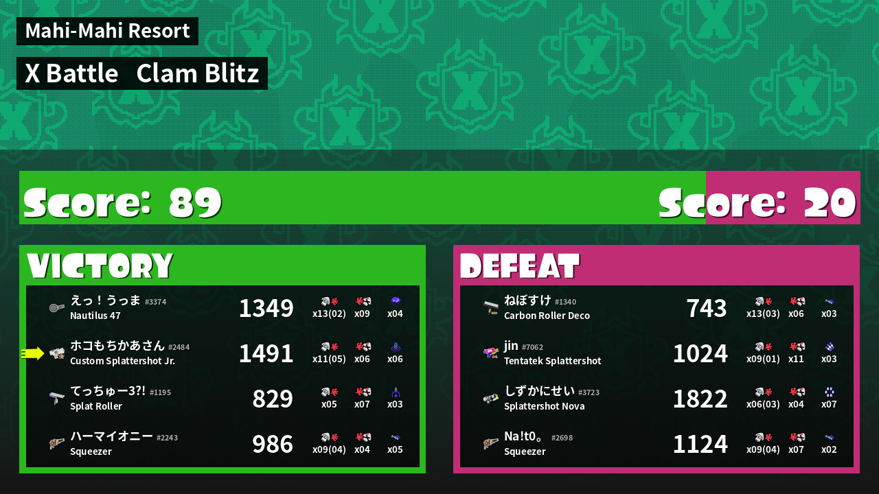 | Mode | Clam Blitz - X Battle | ||