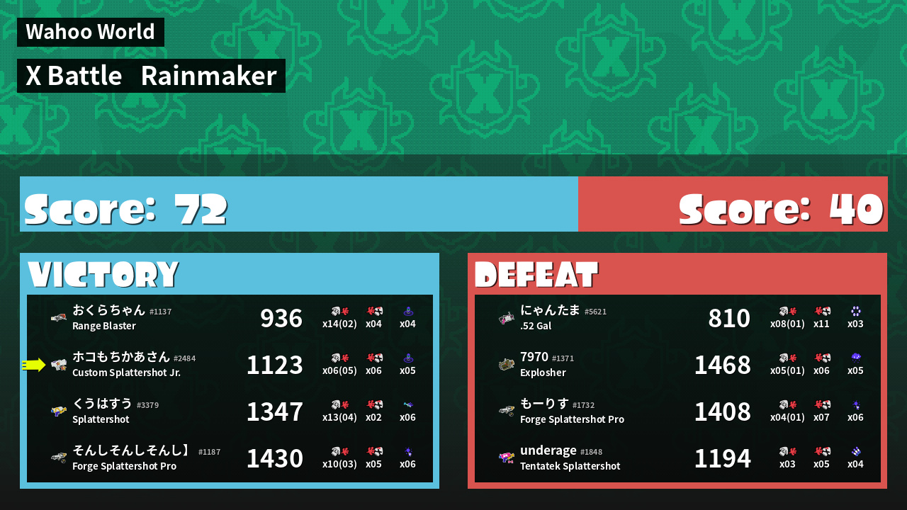 | Mode | Rainmaker - X Battle | ||
