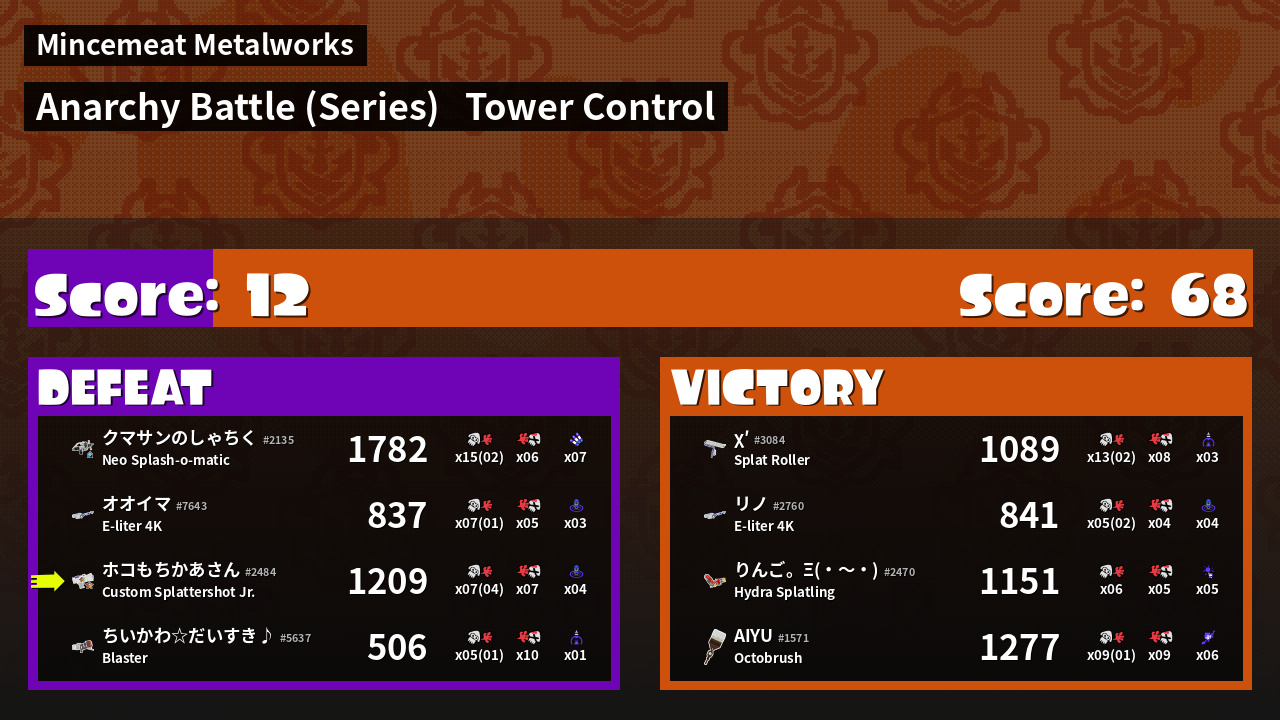 | Mode | Tower Control - Anarchy Battle (Series) | ||