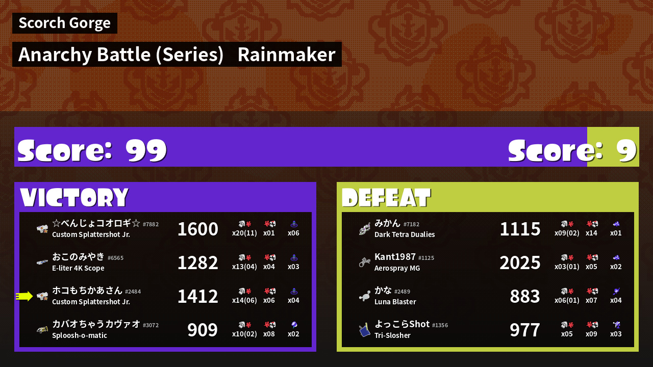 | Medals | #1 Score Booster #1 Rainmaker Carrier First Splat! | ||
