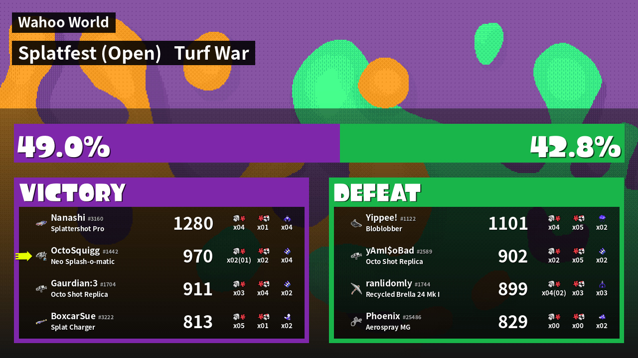 | Medals | #1 Home-Base Inker #1 Splat Assister #1 Base Defender | ||