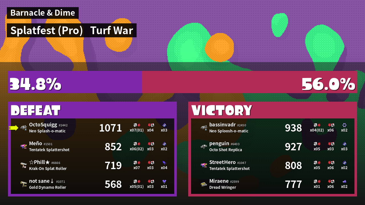 | Mode | Turf War - Splatfest (Pro) | ||