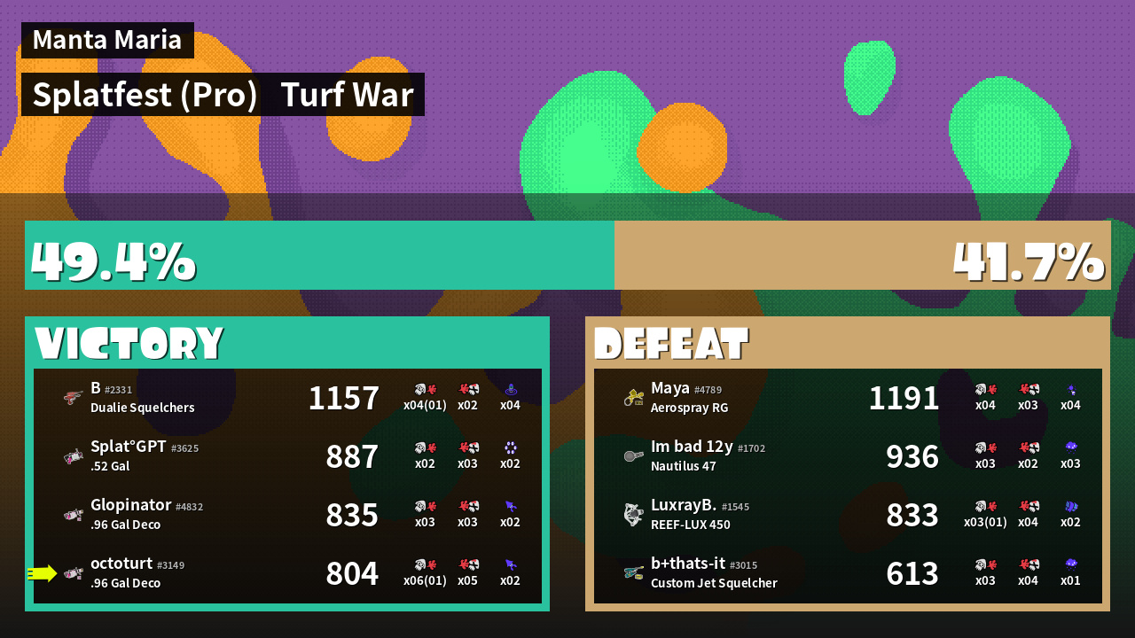 | Weapon | .96 Gal Deco ( Splash Wall / Kraken Royale) | ||