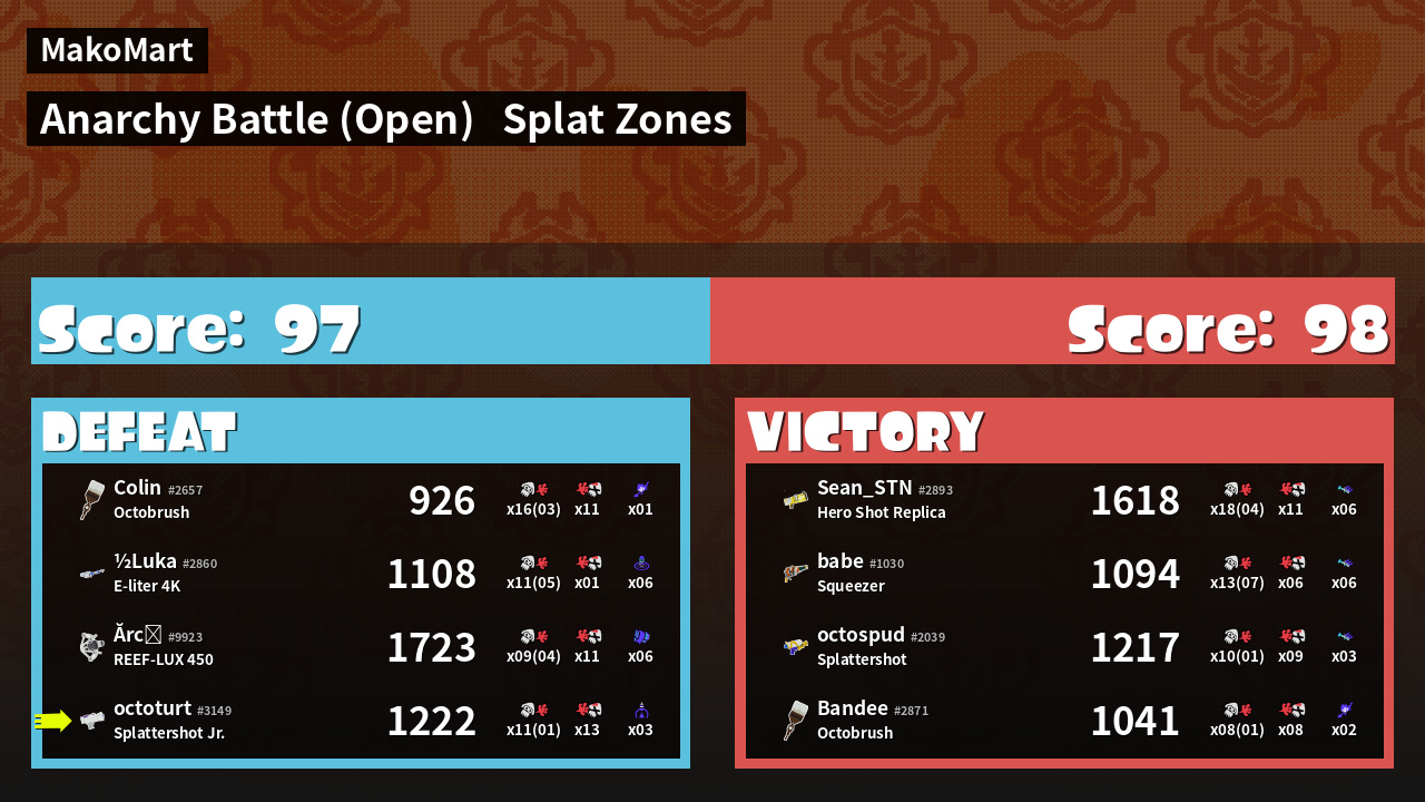 | Mode | Splat Zones - Anarchy Battle (Open) | ||
