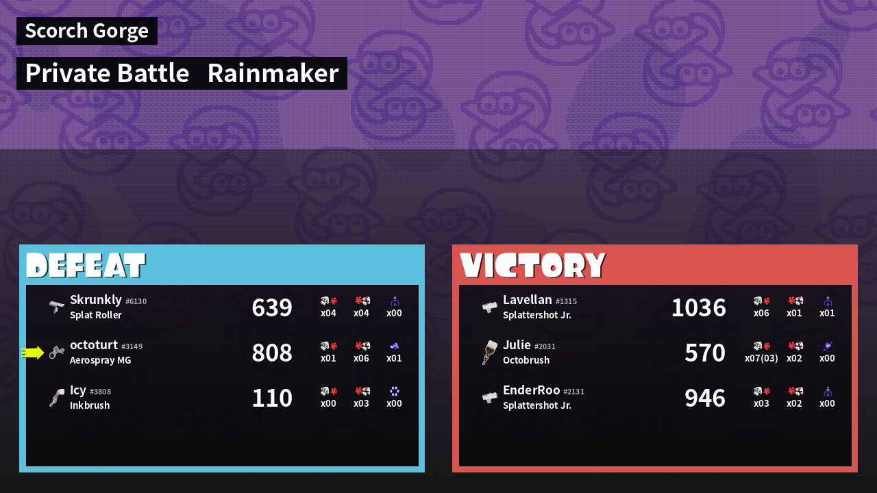 | Medals | #1 Turf Inker #1 Ink Consumer #2 Overall Splatter | ||