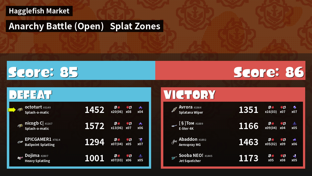 | Mode | Splat Zones - Anarchy Battle (Open) | ||