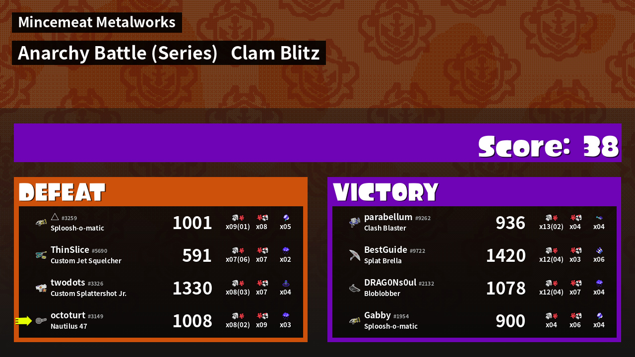 | Mode | Clam Blitz - Anarchy Battle (Series) | ||