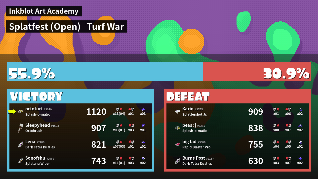 | Medals | #1 Overall Splatter #1 Turf Inker #1 Popular Target | ||