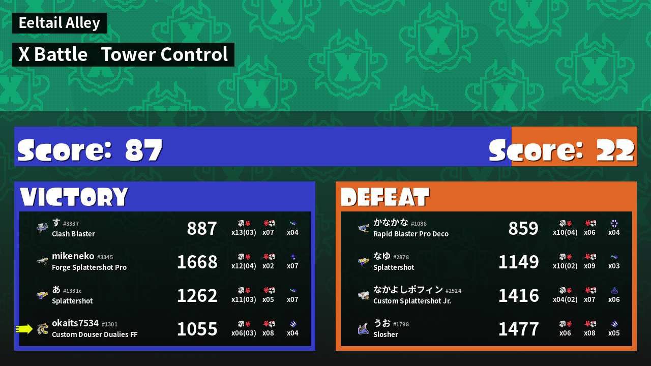 | Weapon | Custom Douser Dualies FF ( Burst Bomb / Triple Inkstrike) | ||