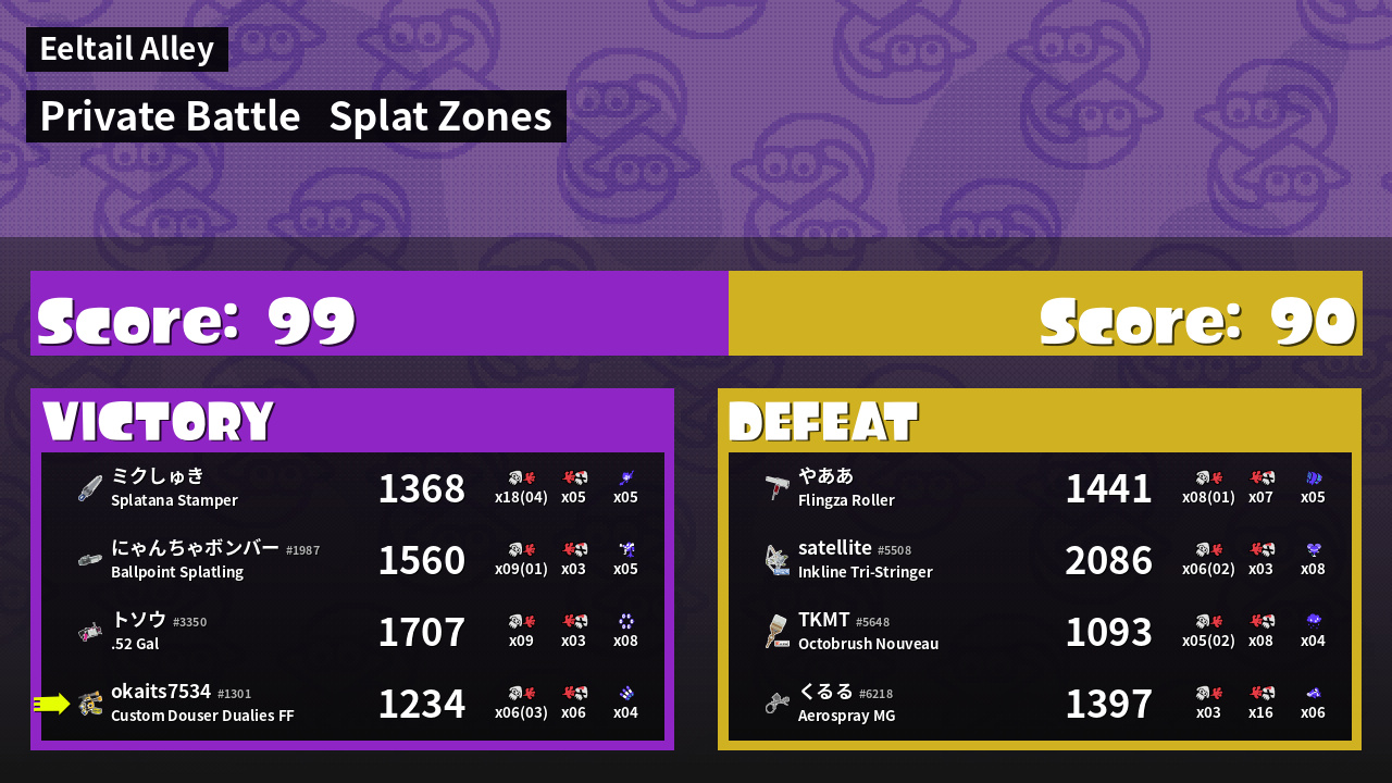| Mode | Splat Zones - Private Battle | ||
