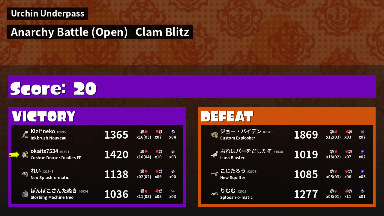 | Mode | Clam Blitz - Anarchy Battle (Open) | ||